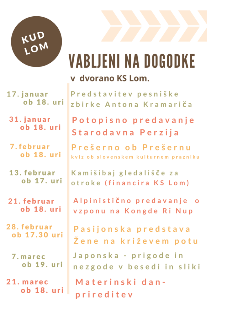 Vabljeni na prireditve v organizaciji KUD Lom.