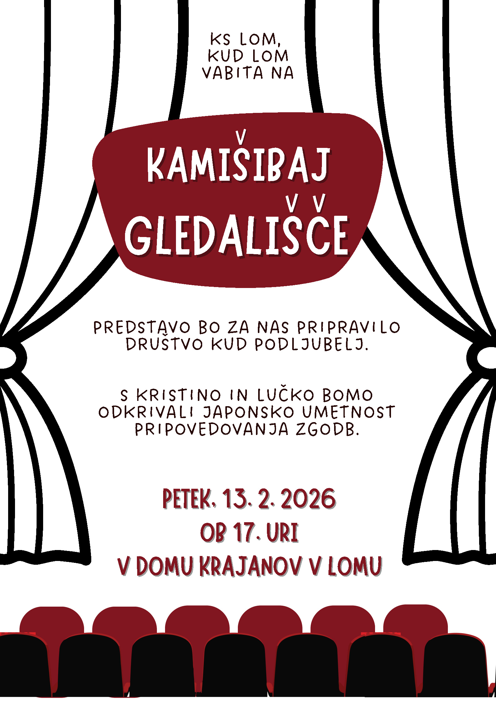 Krajevna skupnost Lom in Kulturno društvo Lom vabita otroke in mlade po srcu na predstavo KAMIŠIBAJ gledališče.